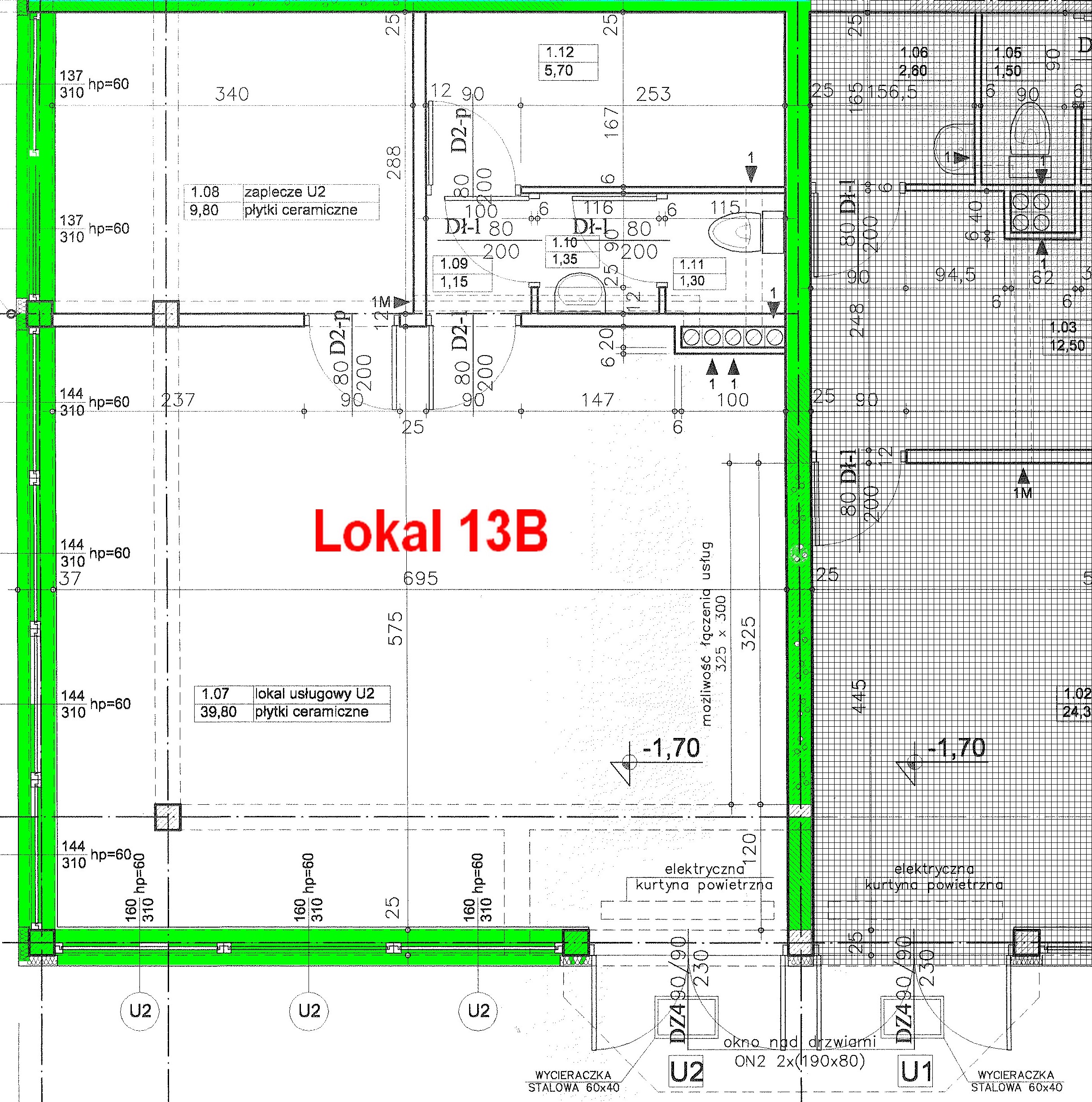 Przeznaczenie lokalu – biura, działalność handlowa lub usługowa z wyłączeniem sprzedaży alkoholu.